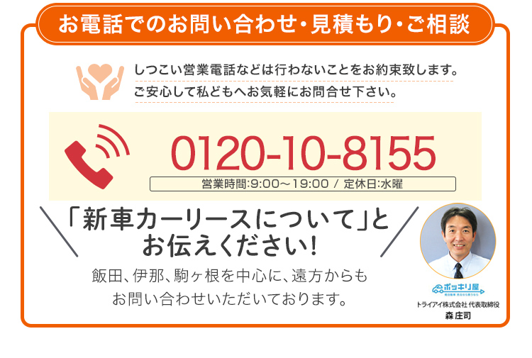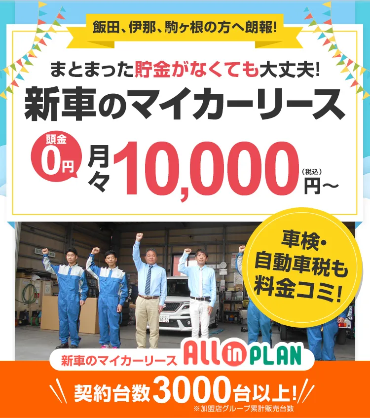 ポッキリ屋はカーリース専門店としてとして飯田店(飯田市上郷飯沼)と伊那店(伊那市西春近)の2店舗体制で営業しております。