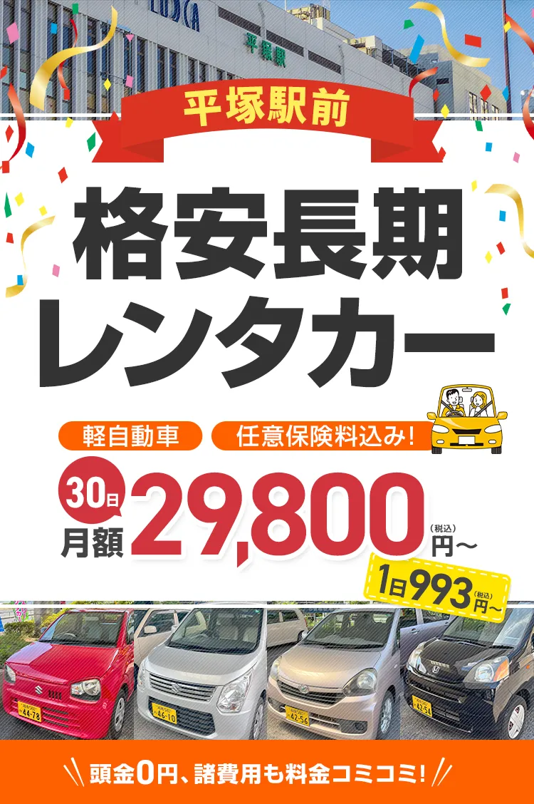 ご契約時と返却時は指定の駅前で受け渡しが可能です。(対応可能駅:秦野駅、茅ヶ崎駅、平塚駅、小田原駅)ただしレンタカーは月に1度の点検が義務付けられているため、1か月以上の長期契約の方は、点検時に秦野店までご来店いただく必要がございます。
